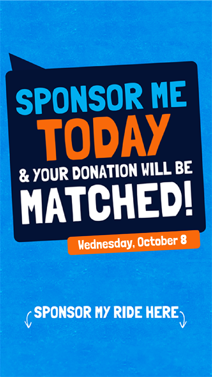 Please sponsor me now via the link below and let's kick cancer's butt - your donation will be matched for TODAY (Wednesday, October 8) ONLY!