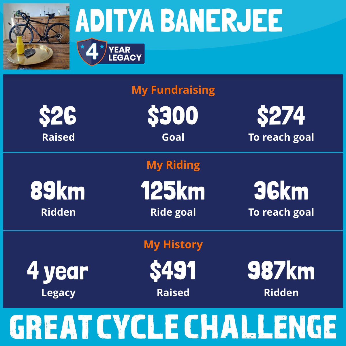 420 km Ridden$160 Raised2023