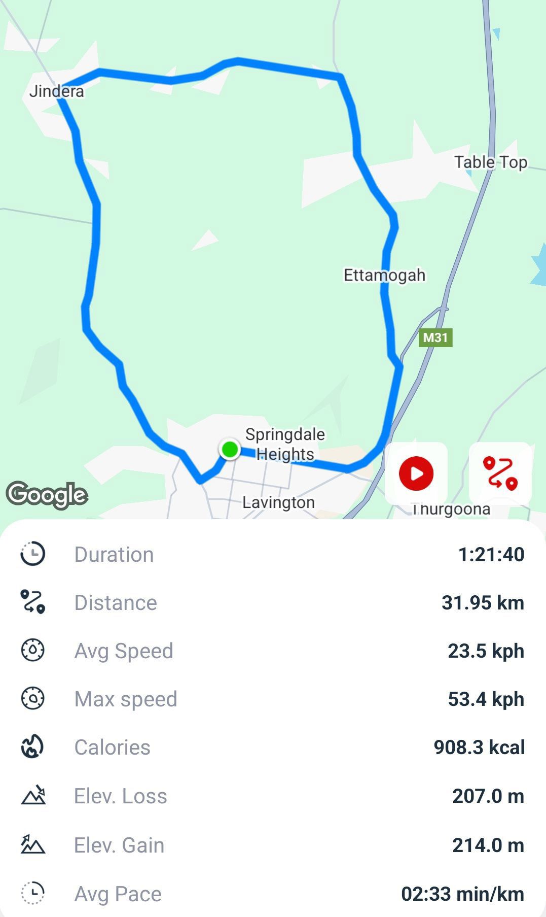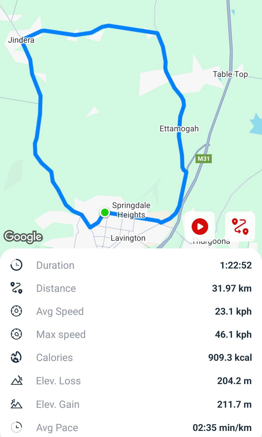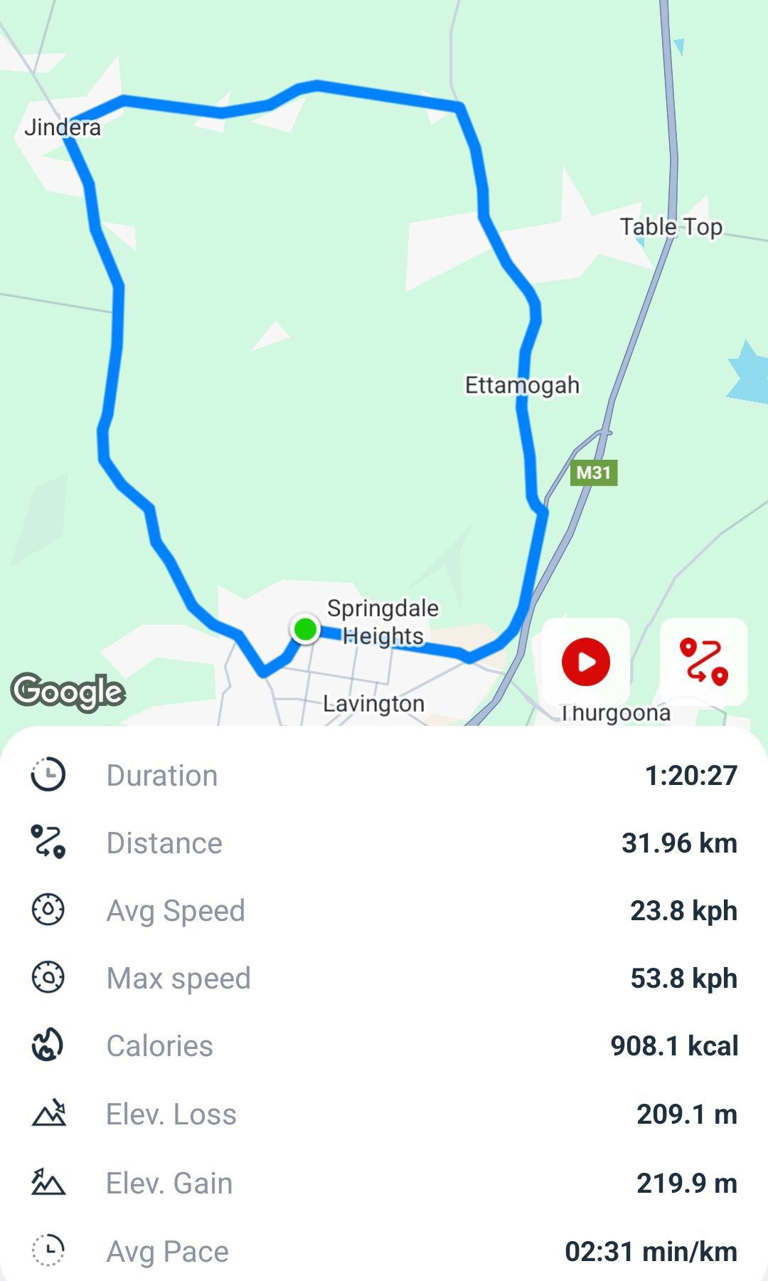 32.0 km ride - Ettamogah/Jindera Loop - Thursday, October 30, 2025