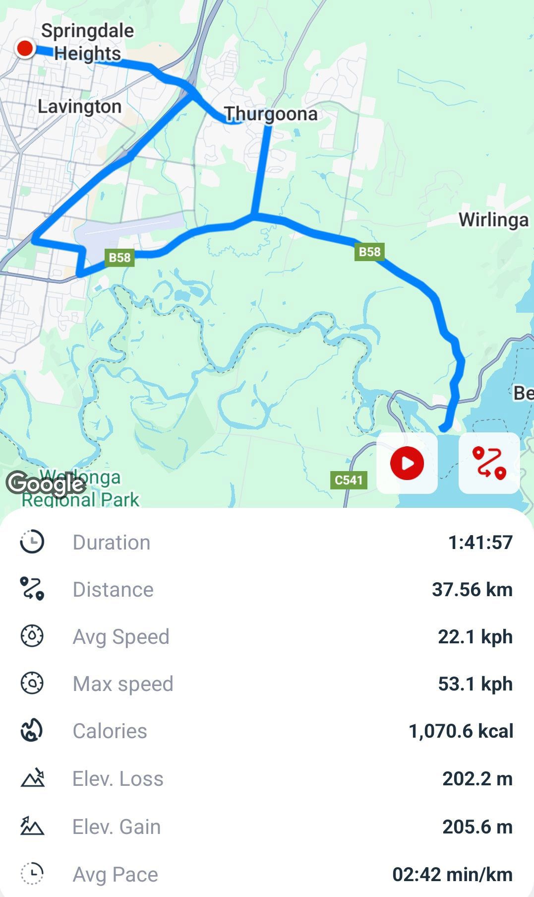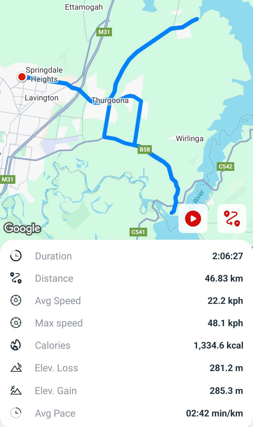46.8 km ride - To Bowna Reserve & the Weir - Tuesday, October 28, 2025