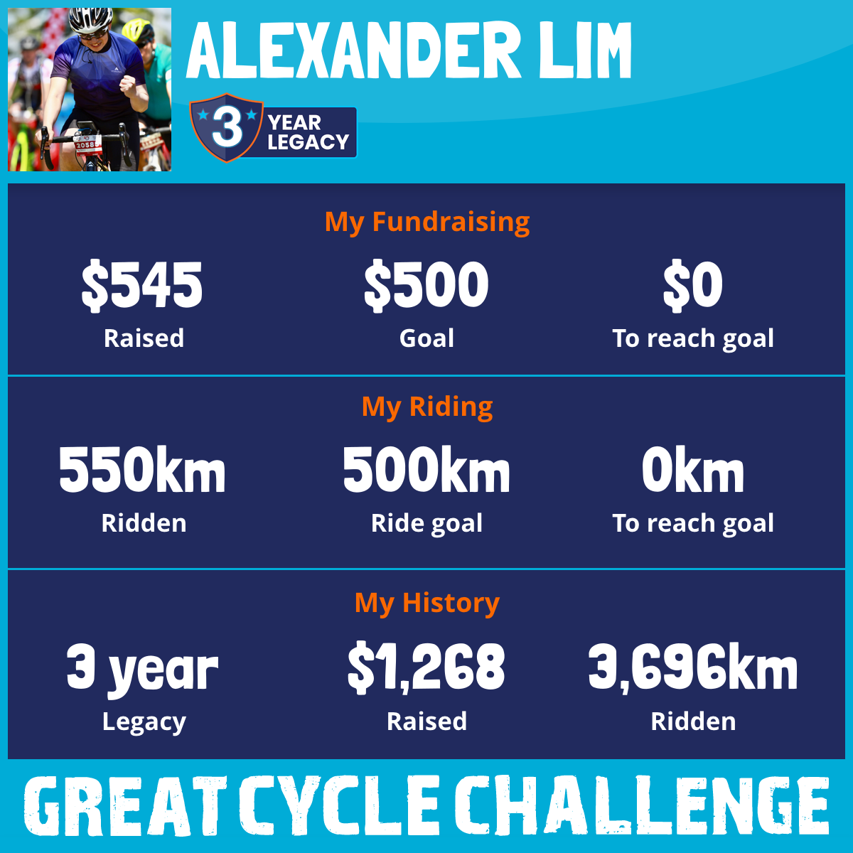 1,461 km Ridden$545 Raised2026