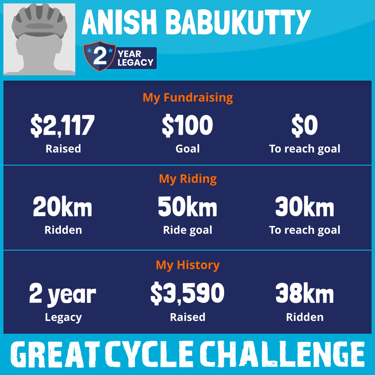 And so I am riding and raising funds to support the Children's Medical Research Institute to continue their work into the prevention, diagnosis, treatment and finding a cure for childhood cancer.