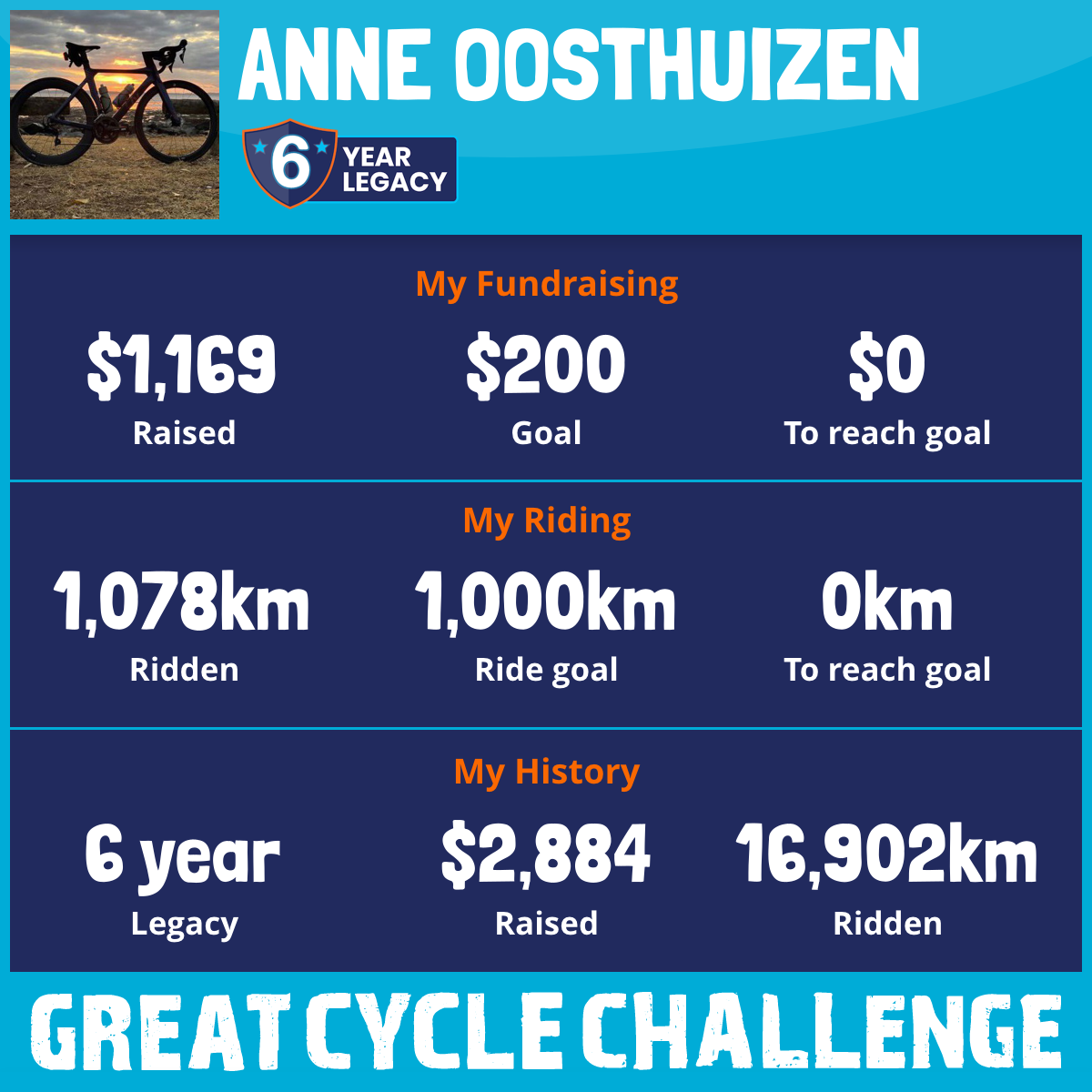 I am riding 1,000 km in memory of my mum, Mum, Stuart & John. Please sponsor me and support my challenge to fight kids' cancer and save little lives.