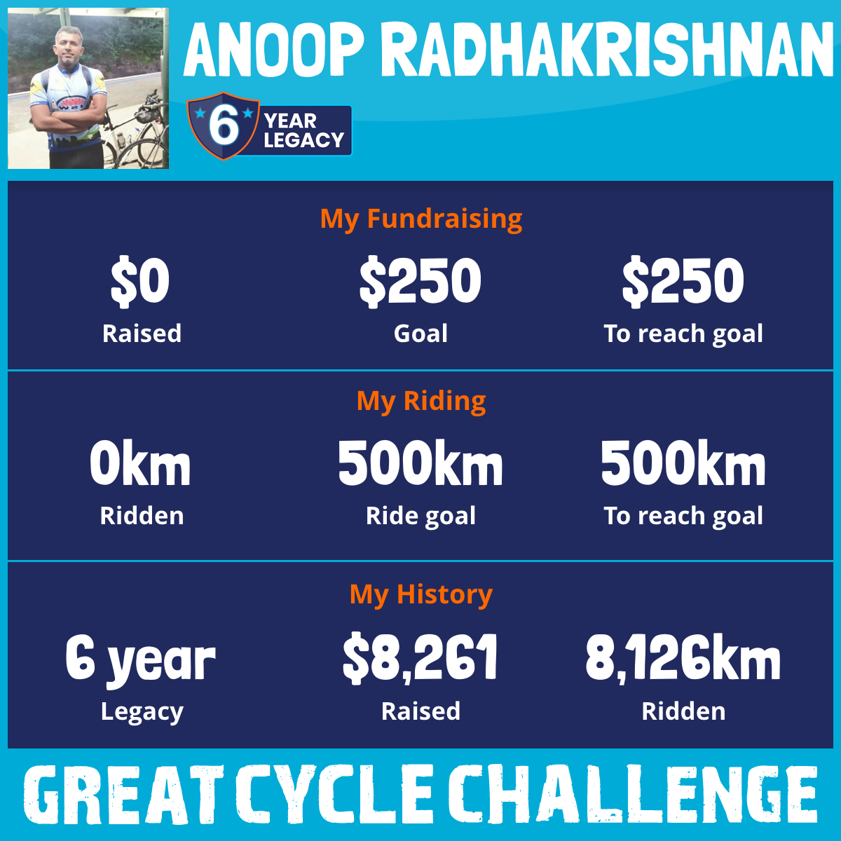 2,031 km Ridden$4,899 Raised2021