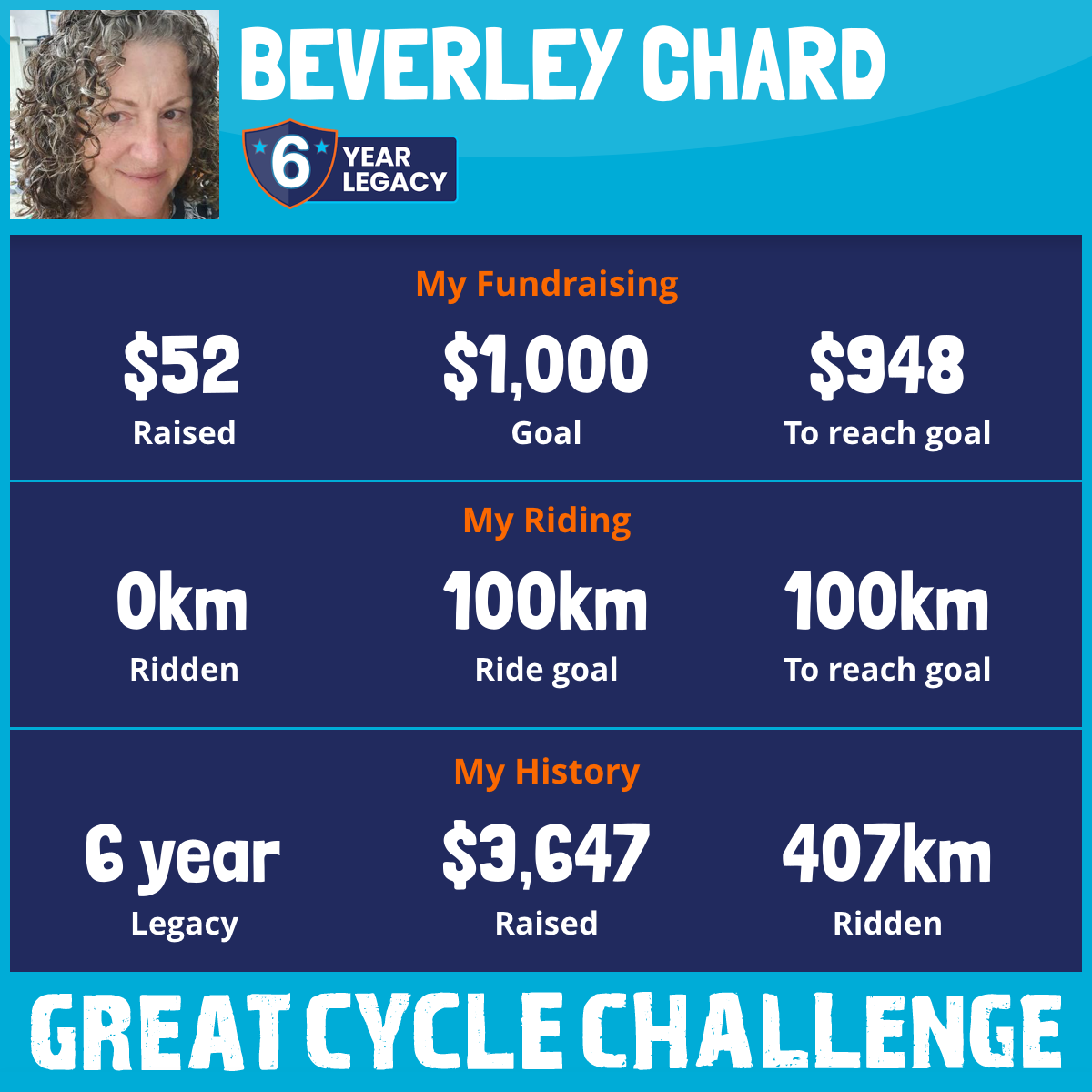 31 Oct 2025This year's challenge has been worthwhile for me in more ways than one. Foremost, the desire to help raise funds to boost research into children's cancer. Then, losing my Mum to cancer in March this year at the age of 94.5 years, with her words of "I have had a good life", giving me detemination to do my best on this years challenge. Thank you so much to everyone who has ridden, donated and supported riders from all corners, that support is always so greatfully received by the C.M.R.I, to eventually free innocent children from their cancer battles, and for them to have a good life.
