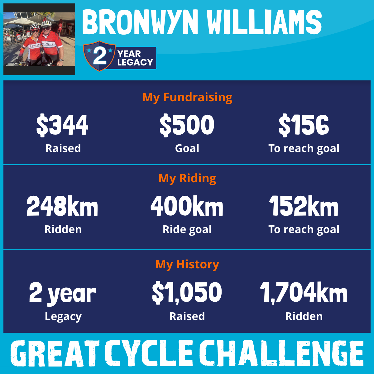 And so I am riding and raising funds to support the Children's Medical Research Institute to continue their work into the prevention, diagnosis, treatment and finding a cure for childhood cancer.