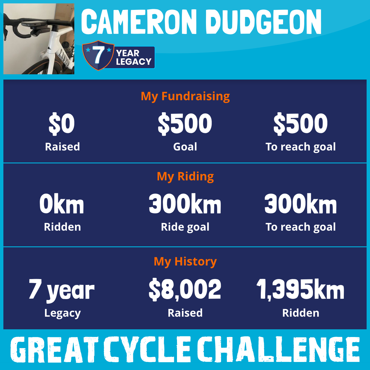 I am riding 300 km for Grahame. Please sponsor me and support my challenge to fight kids' cancer and save little lives.