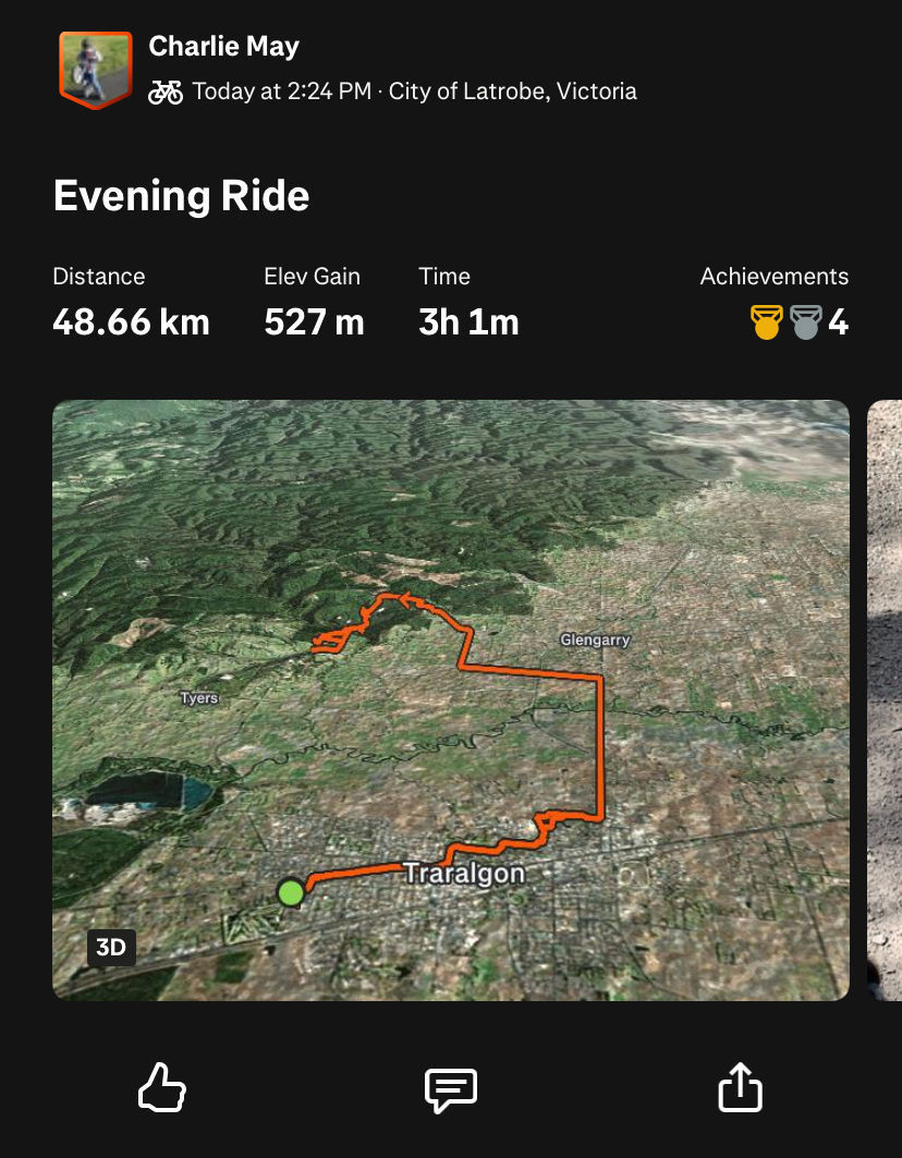 45.0 km ride - strava is being dumb and wont upload the ride although I know it was 45km’s - Monday, October 20, 2025