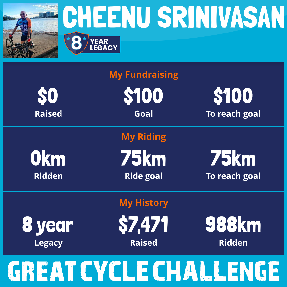 And so I am riding and raising funds to support the Children's Medical Research Institute to continue their work into the prevention, diagnosis, treatment and finding a cure for childhood cancer.