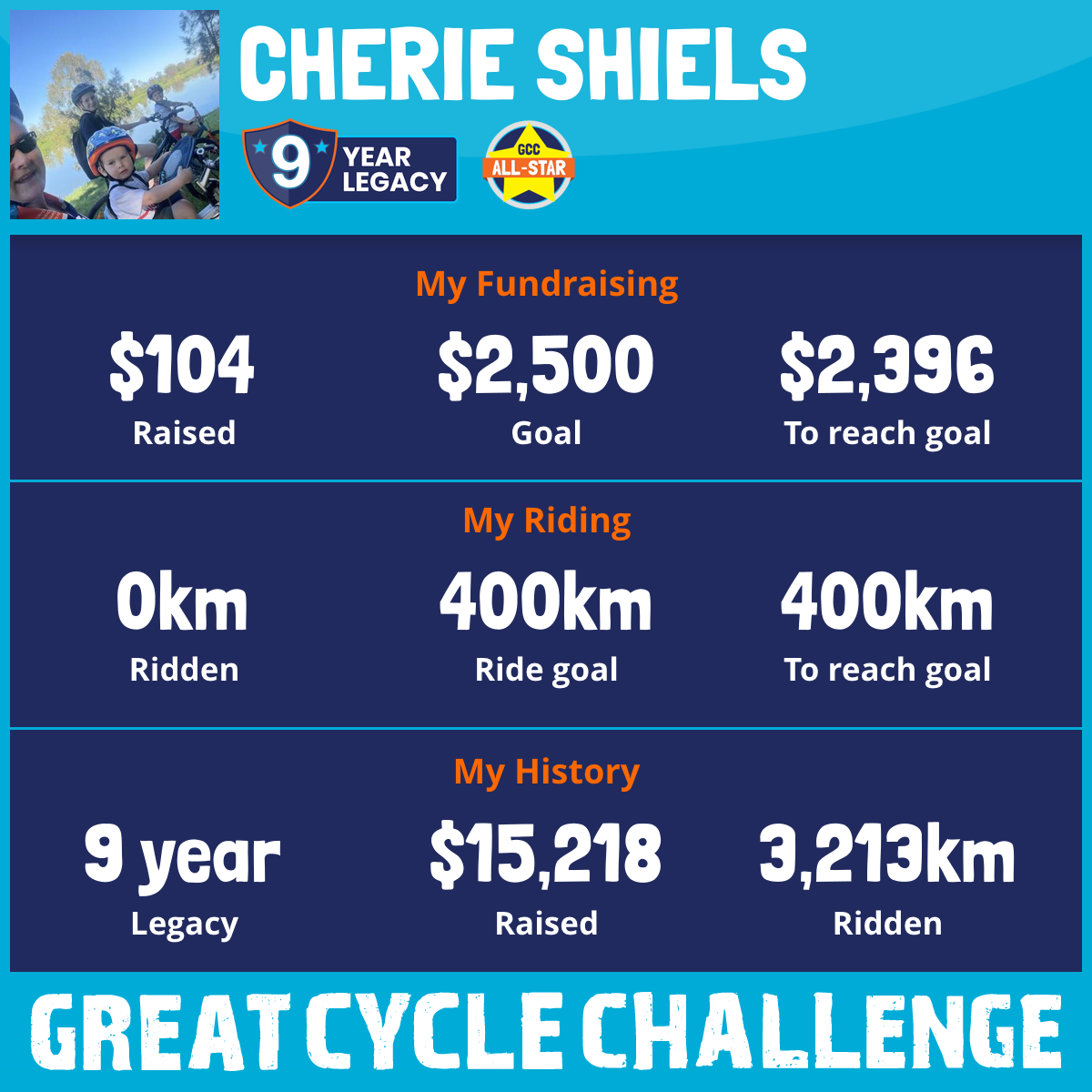 And so I am riding and raising funds to support the Children's Medical Research Institute to continue their work into the prevention, diagnosis, treatment and finding a cure for childhood cancer.