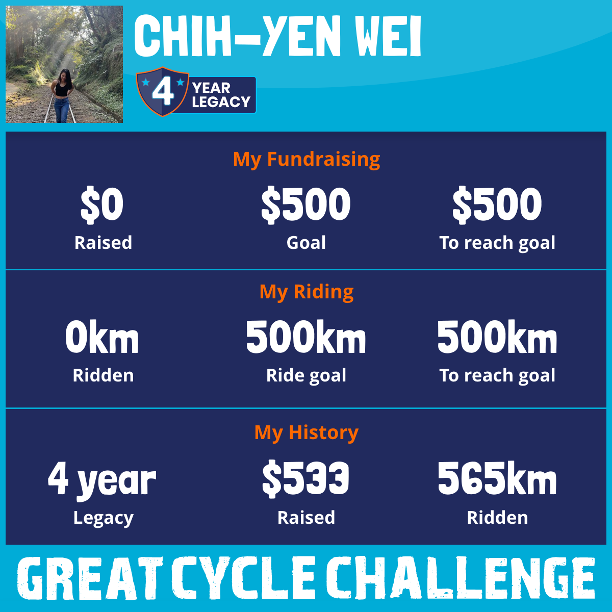 848 km Ridden$557 Raised2025