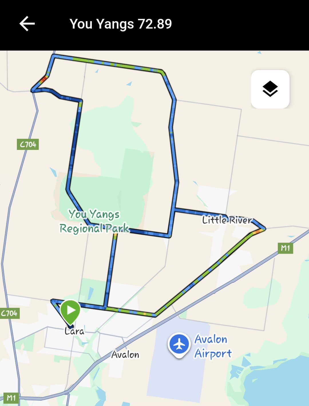 72.9 km ride - You Yangs 72.89 Km - Thursday, October 23, 2025