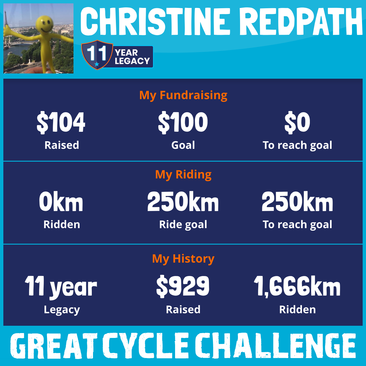 And so I am riding and raising funds to support the Children's Medical Research Institute to continue their work into the prevention, diagnosis, treatment and finding a cure for childhood cancer.