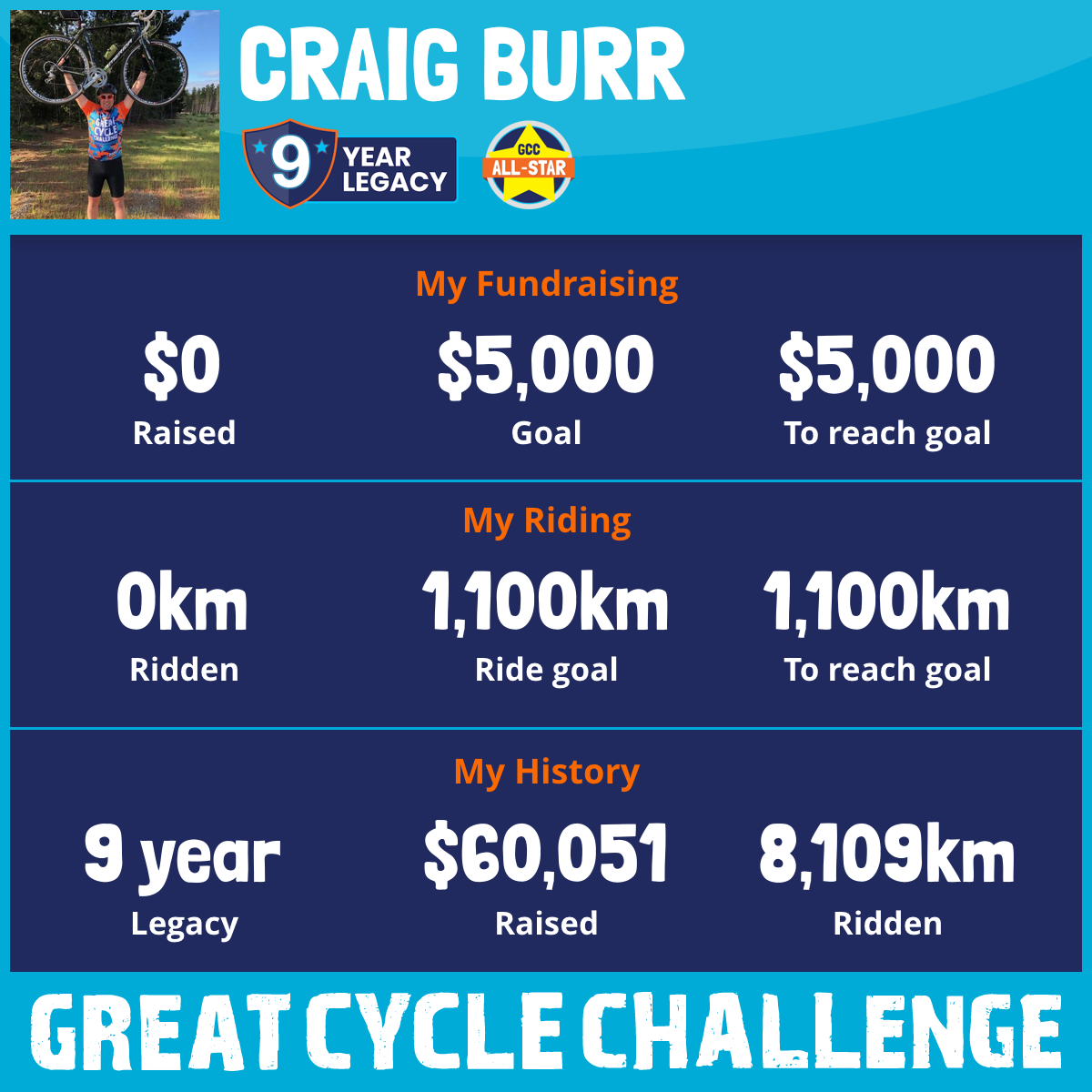 1,003 km Ridden$5,639 Raised2020
