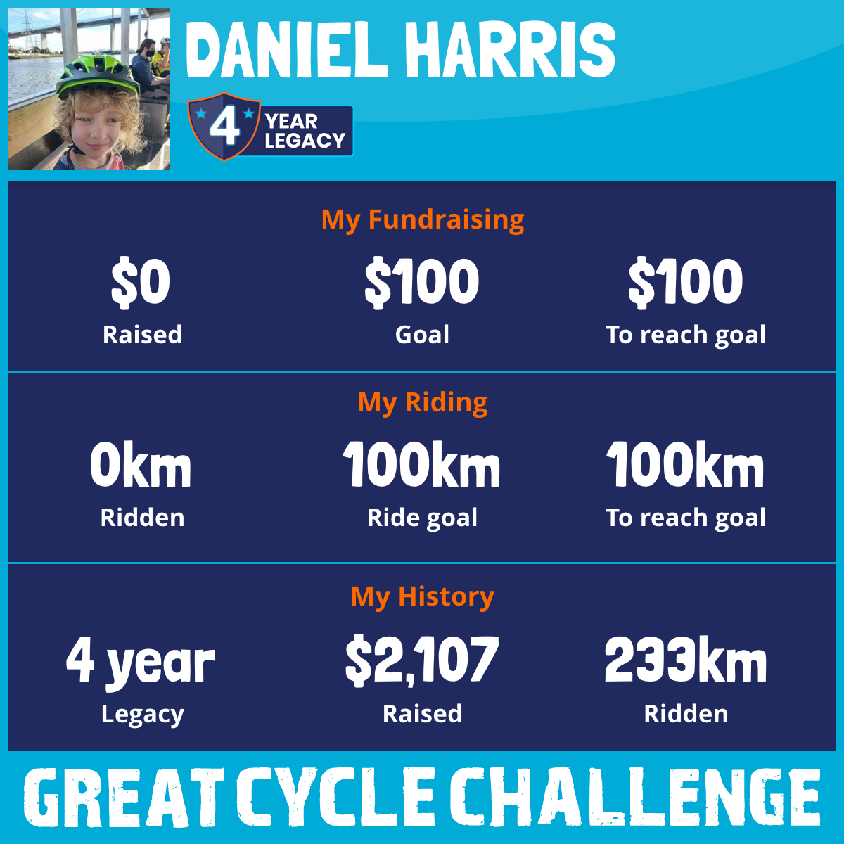 And so I am riding and raising funds to support the Children's Medical Research Institute to continue their work into the prevention, diagnosis, treatment and finding a cure for childhood cancer.