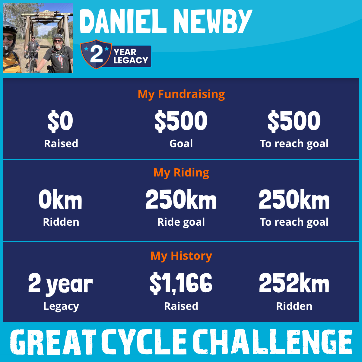 252 km Ridden$1,166 Raised2024