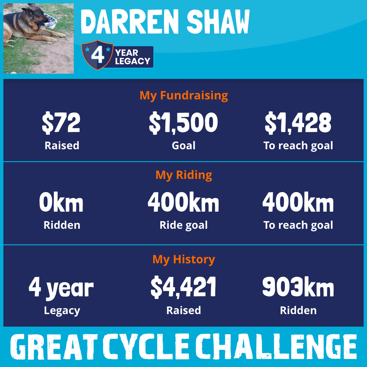 376 km Ridden$1,347 Raised2023