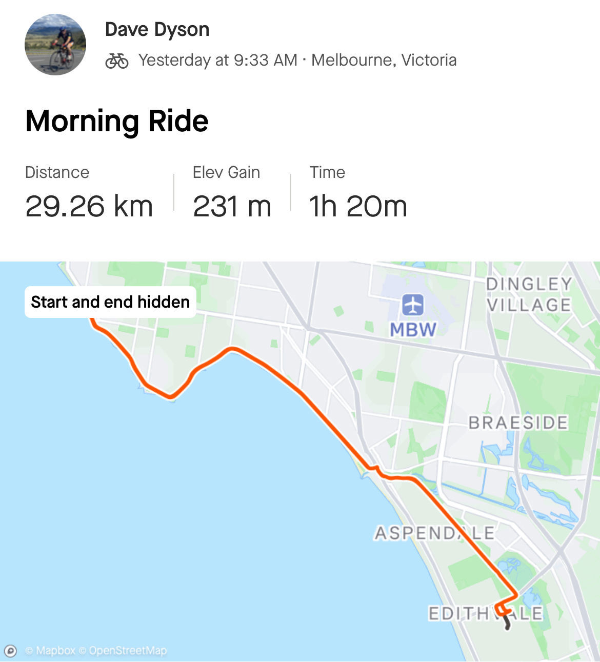 29.3 km ride - Ride 5 Edithvale to Black Rock return - Thursday, October 16, 2025