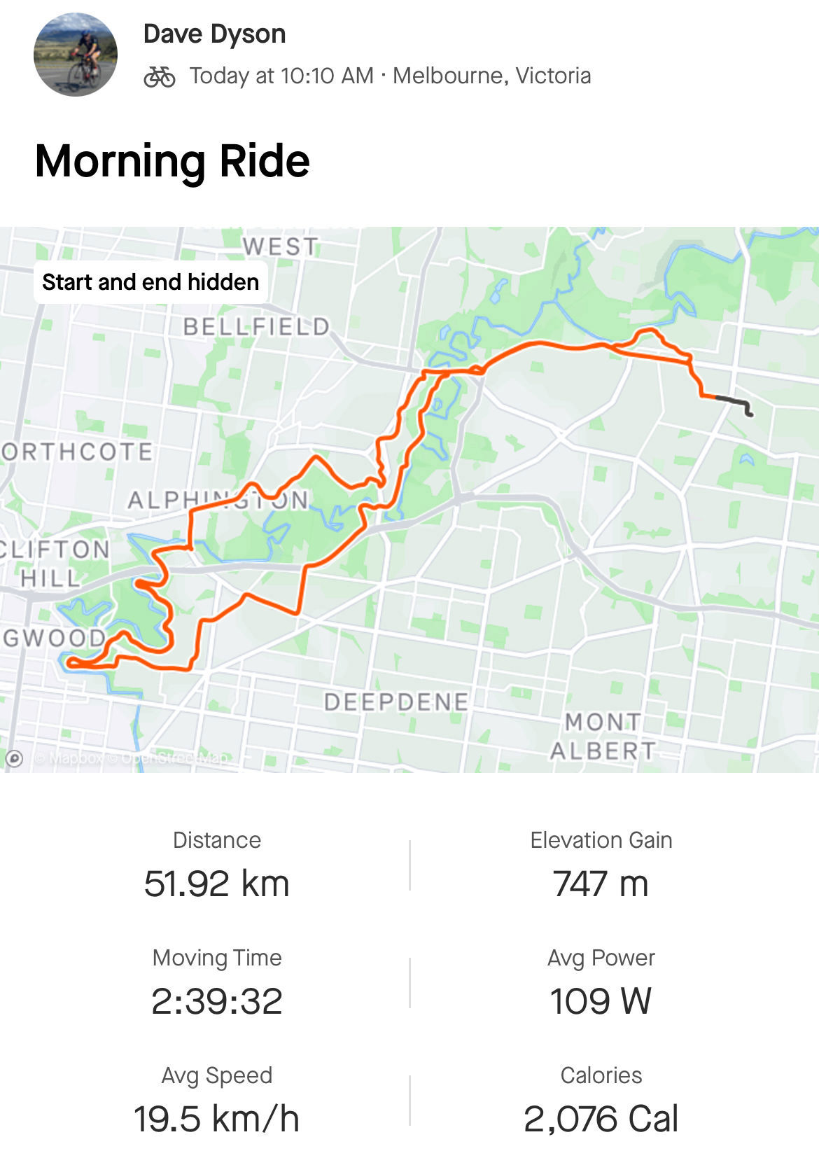 51.9 km ride - Ride 7 - 50 odd to go! - Thursday, October 23, 2025
