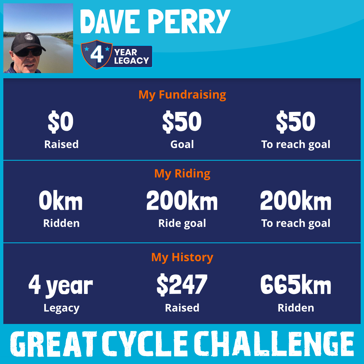 I am riding 200 km in memory of my mum, Dave Perry. Please sponsor me and support my challenge to fight kids' cancer and save little lives.