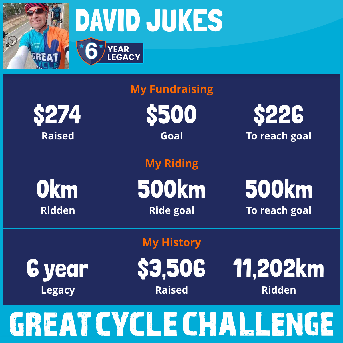 3,509 km Ridden$1,060 Raised2021