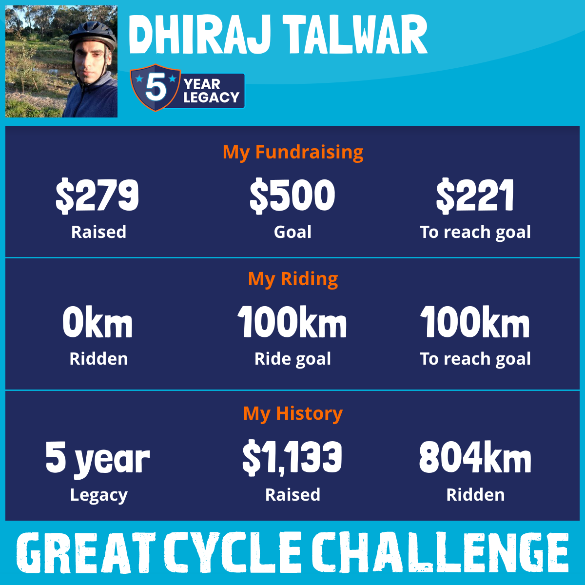 133 km Ridden$342 Raised2021