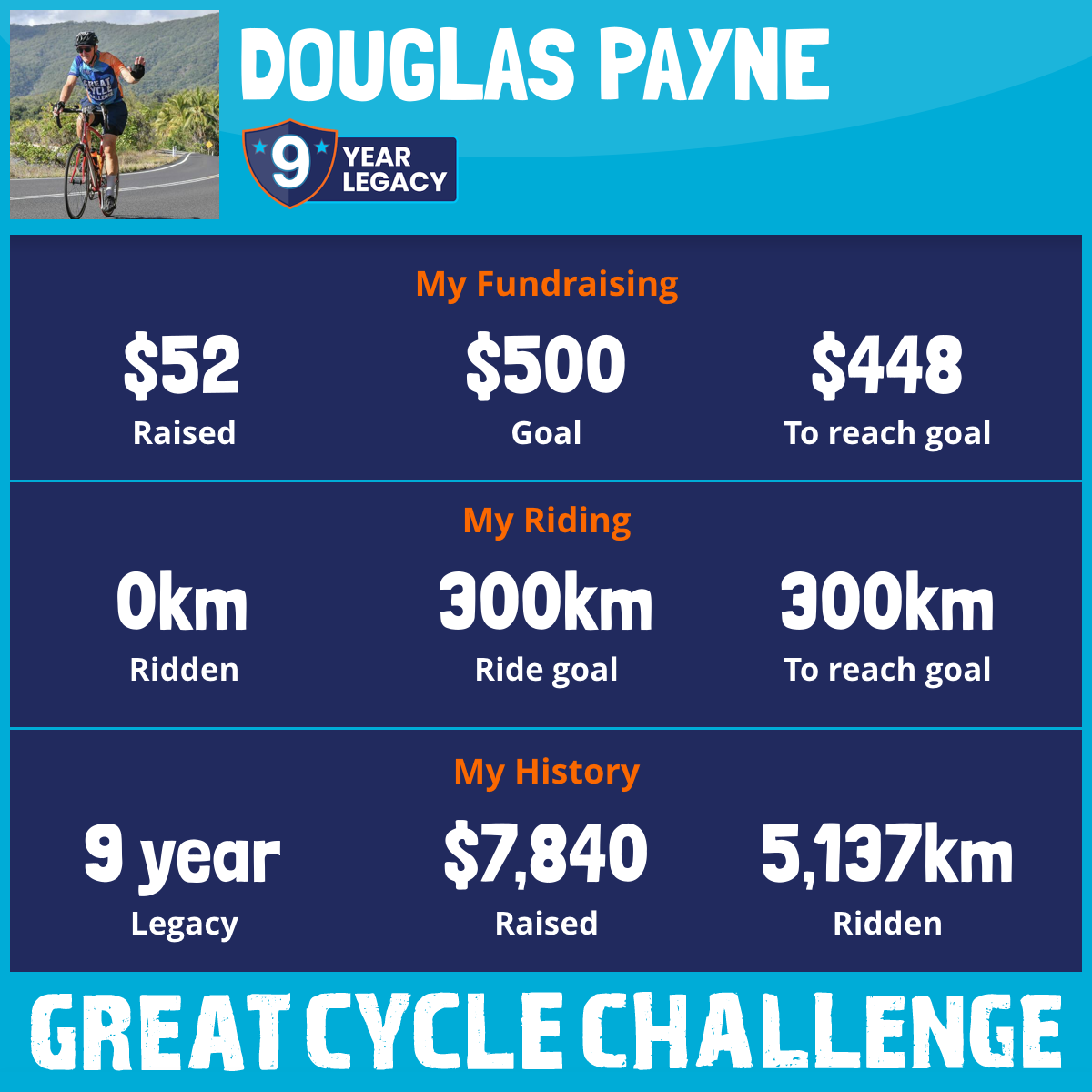And so I am riding and raising funds to support the Children's Medical Research Institute to continue their work into the prevention, diagnosis, treatment and finding a cure for childhood cancer. Since 2016 I have ridden over 5,000 klms and raised over $7,800 to support this research.