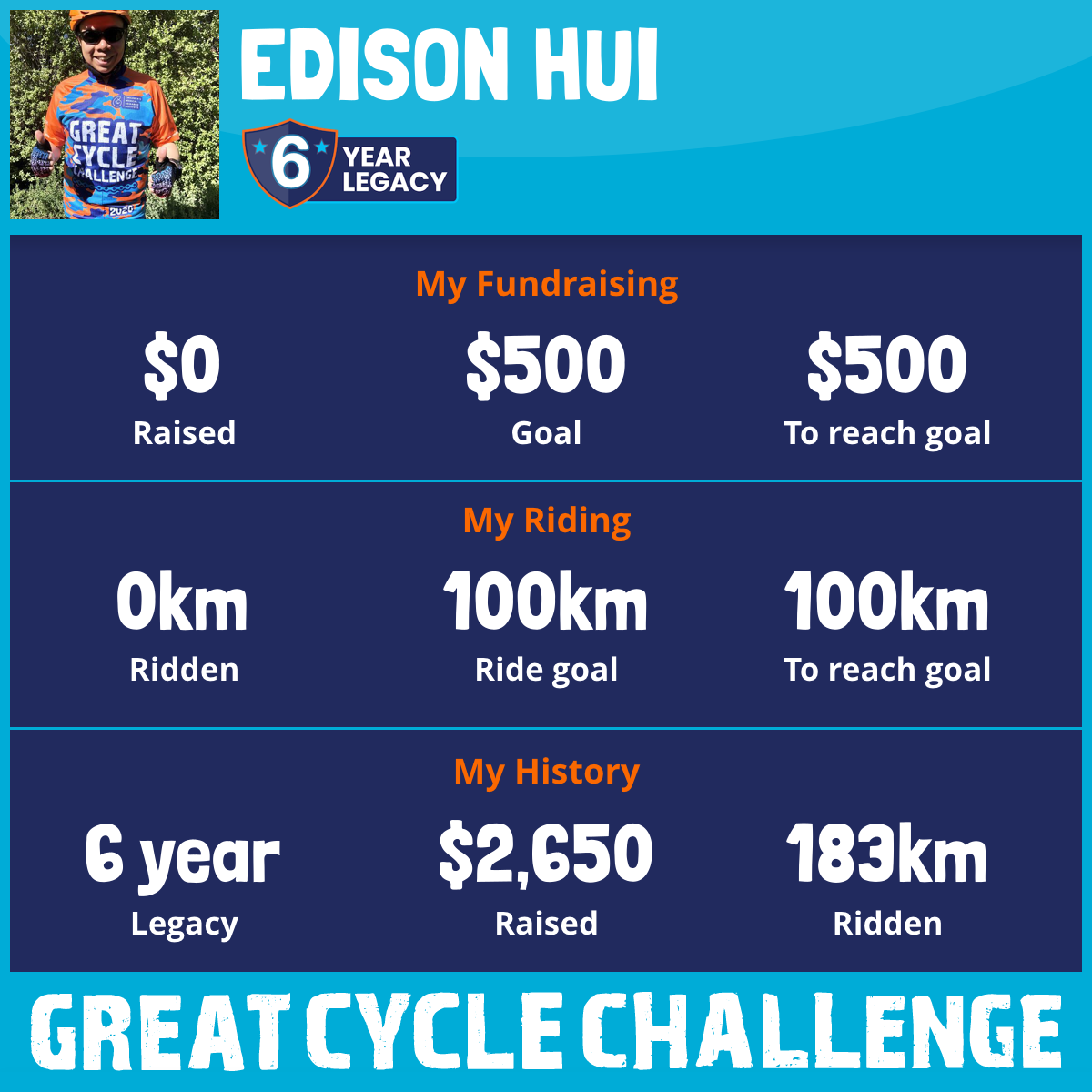 68 km Ridden$950 Raised2020