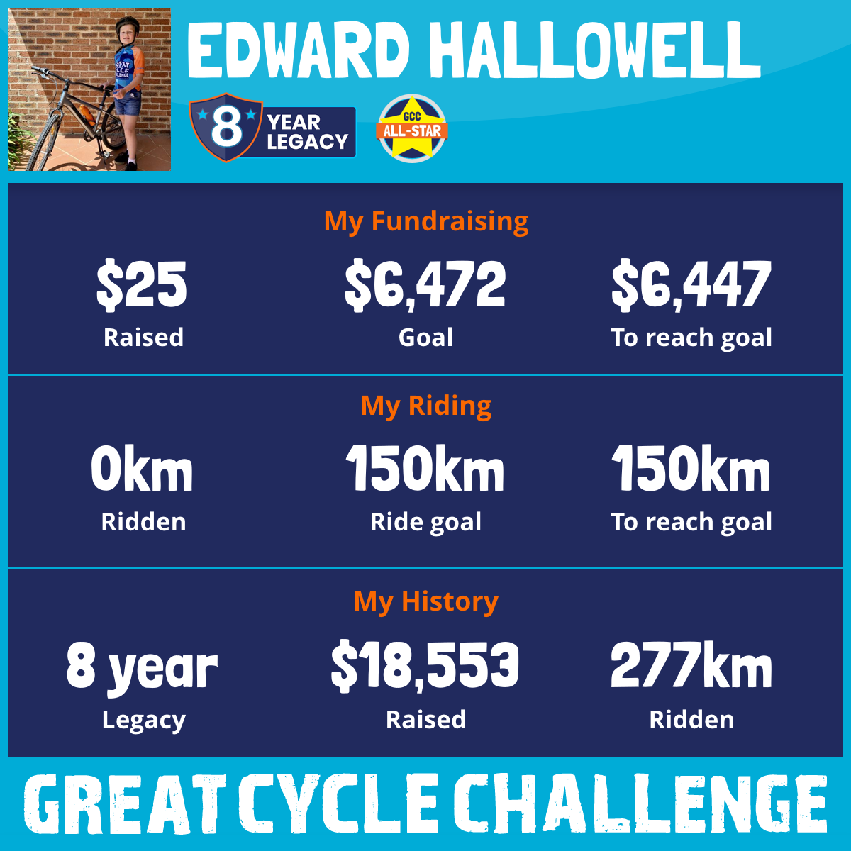 And so I am riding and raising funds to support the Children's Medical Research Institute to continue their work into the prevention, diagnosis, treatment and finding a cure for childhood cancer.
