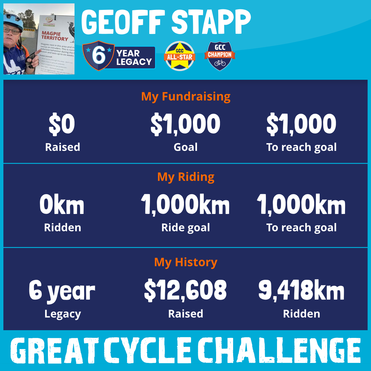 1,050 km Ridden$1,200 Raised2022