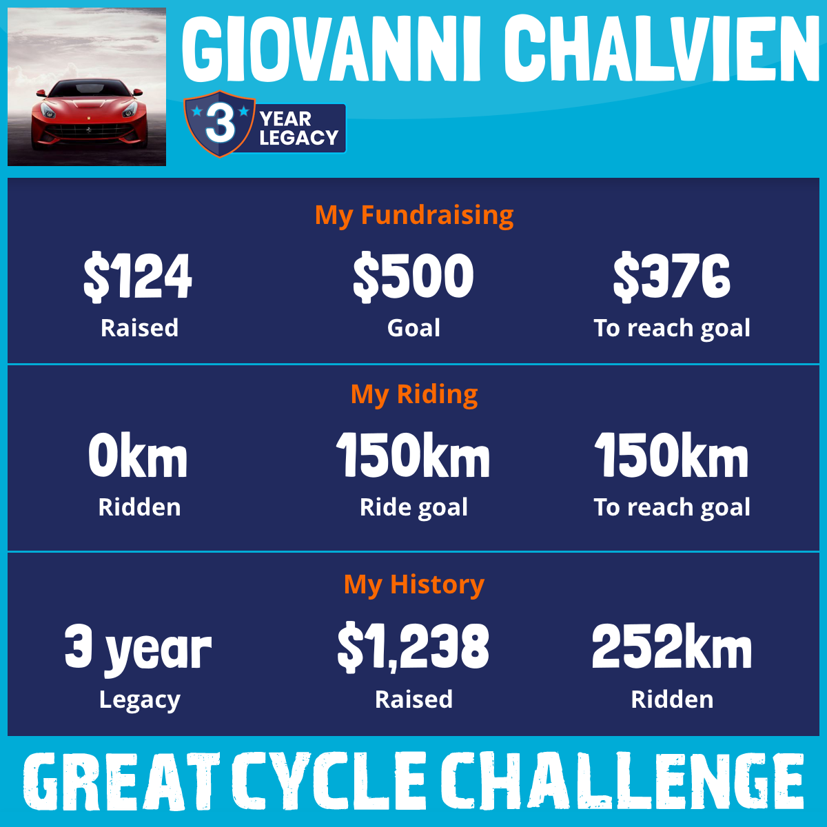 151 km Ridden$576 Raised2020