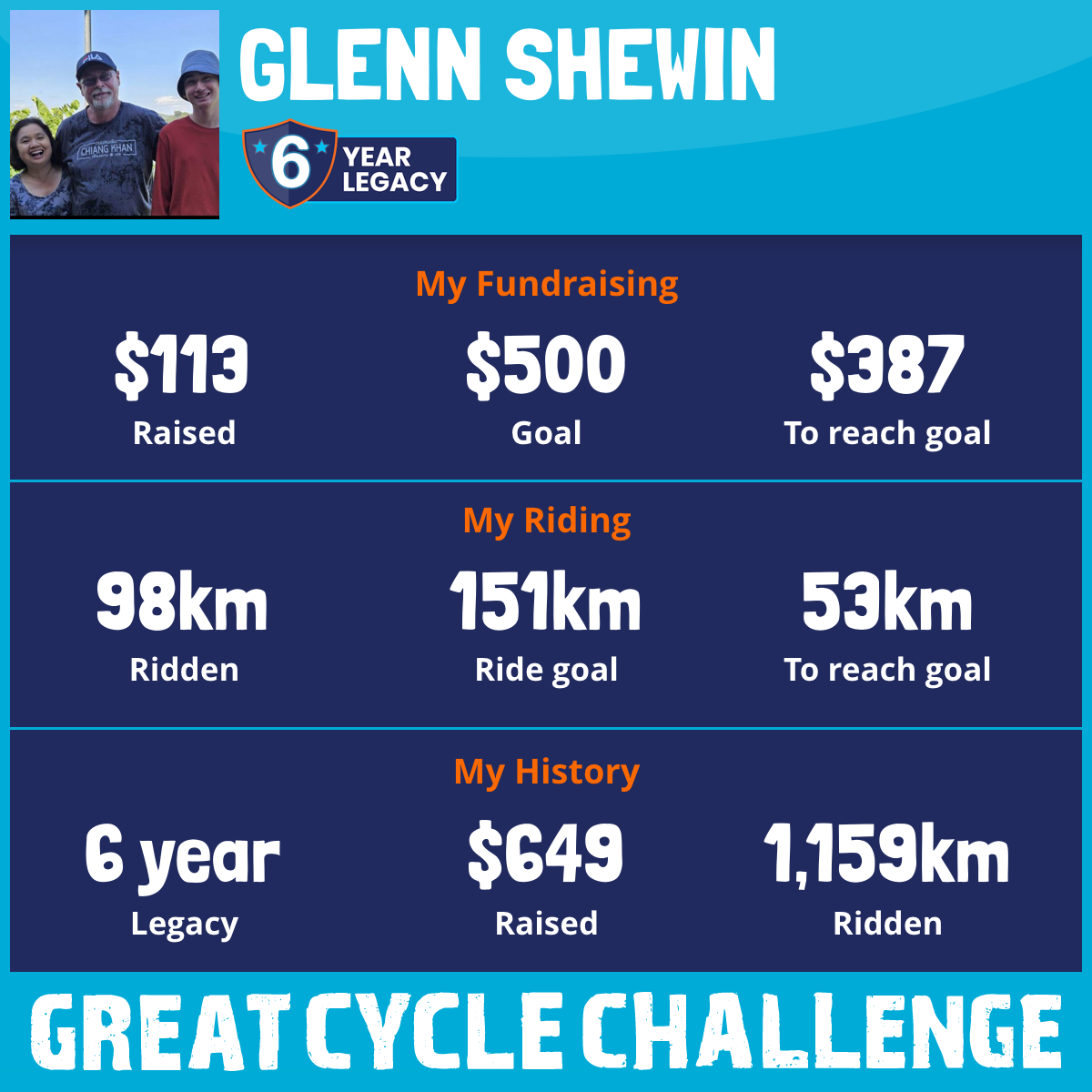 I am riding 151 km in memory of Trevor Shewin. Please sponsor me and support my challenge to fight kids' cancer and save little lives.