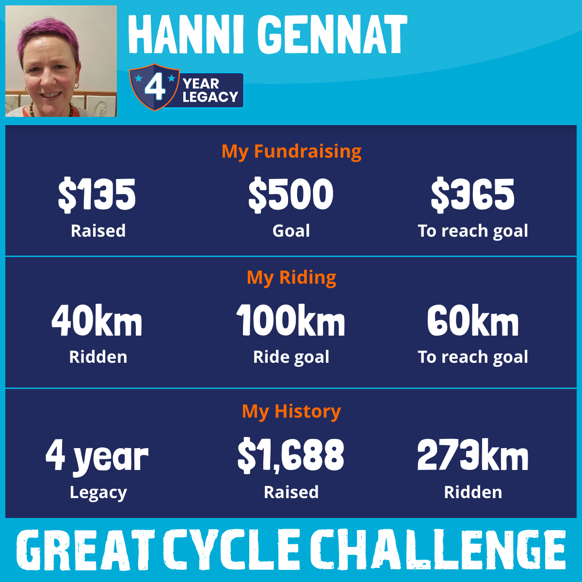 And so I am riding and raising funds to support the Children's Medical Research Institute to continue their work into the prevention, diagnosis, treatment and finding a cure for childhood cancer.