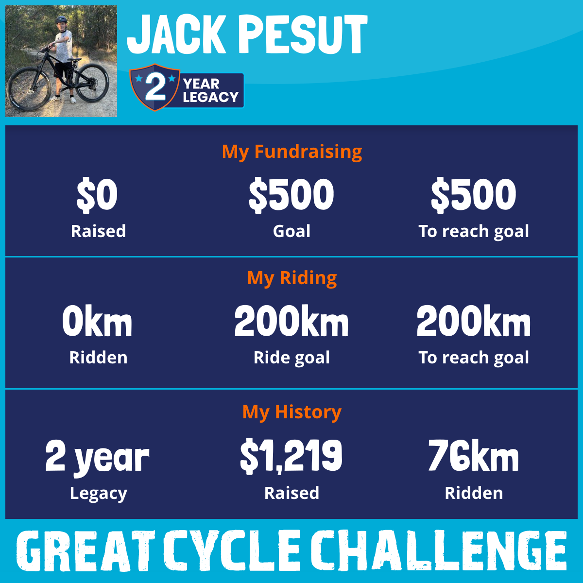 76 km Ridden$1,219 Raised2024
