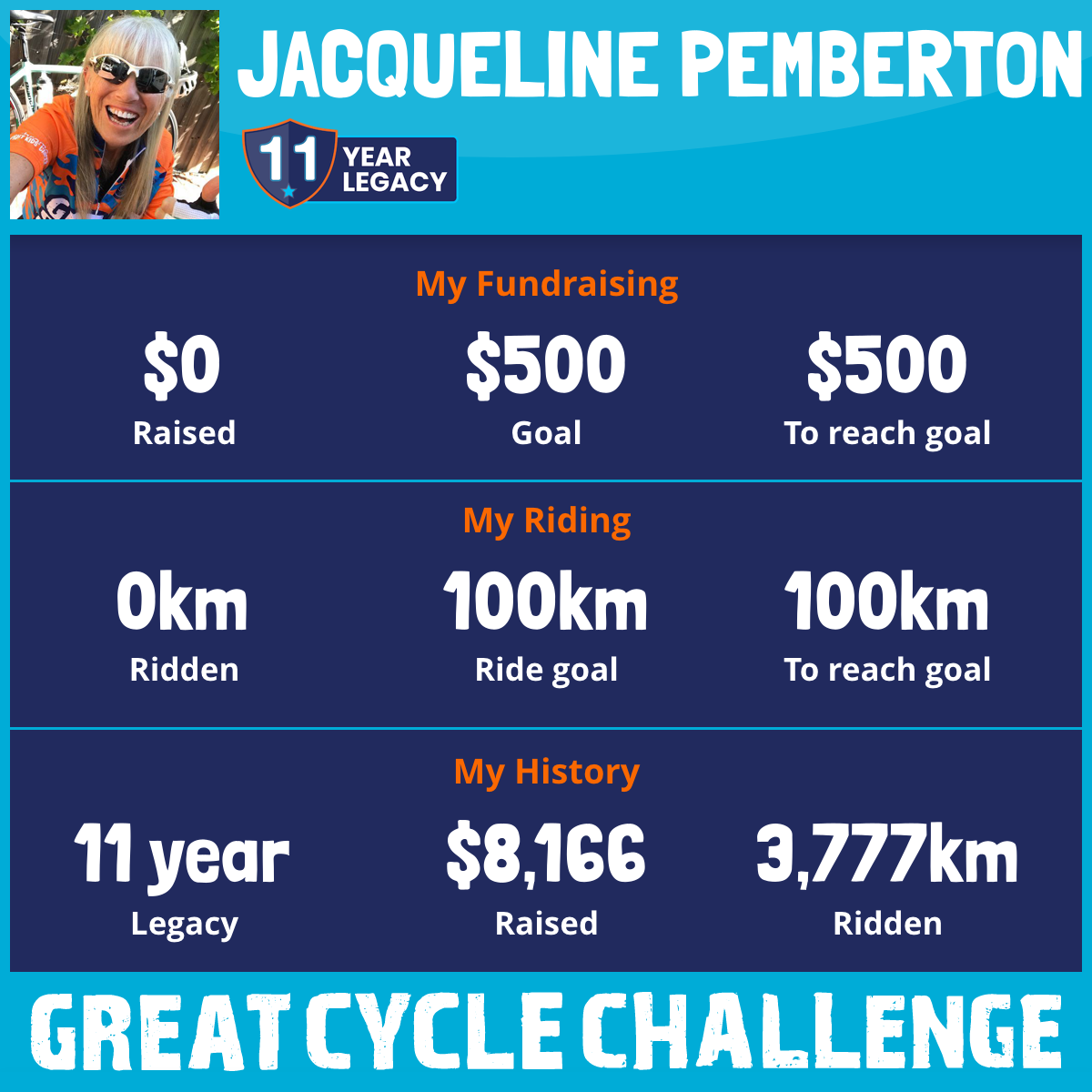 My father was a cyclist through and through for most of his life. He and I spent many kms on the road together. At 80 years young dad was riding right up until a month before cancer took him from me. Together on our trusty mountain bikes we rode 481kms between Esperance and Albany in 4 days! So this year, once again and in his memory I will be riding during October for the eleventh year in a row, to raise funds to reach my initial goal which was to raise ten thousand dollars in ten years , to support childhood cancer. Dad loved kids and would be proud Im doing this.