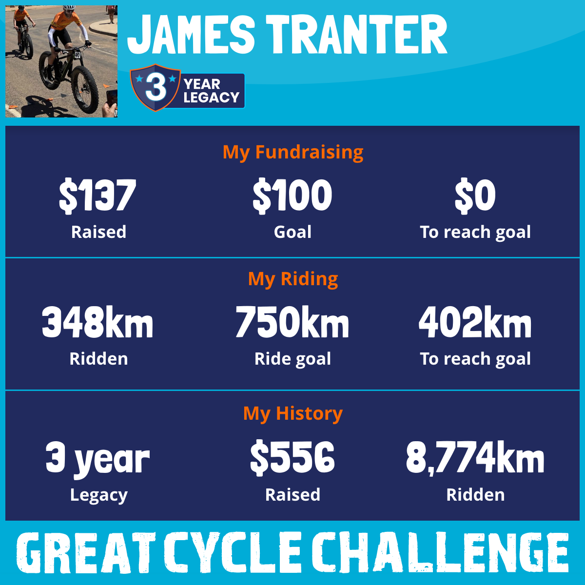 1,399 km Ridden$137 Raised2025