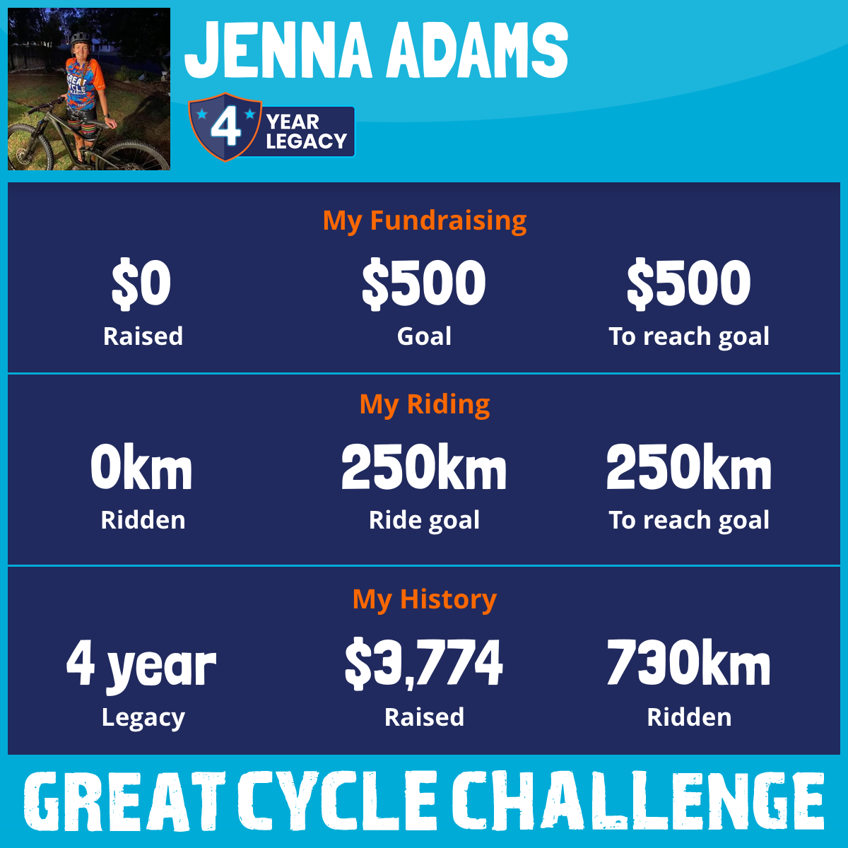And so I am riding and raising funds to support the Children's Medical Research Institute to continue their work into the prevention, diagnosis, treatment and finding a cure for childhood cancer.
