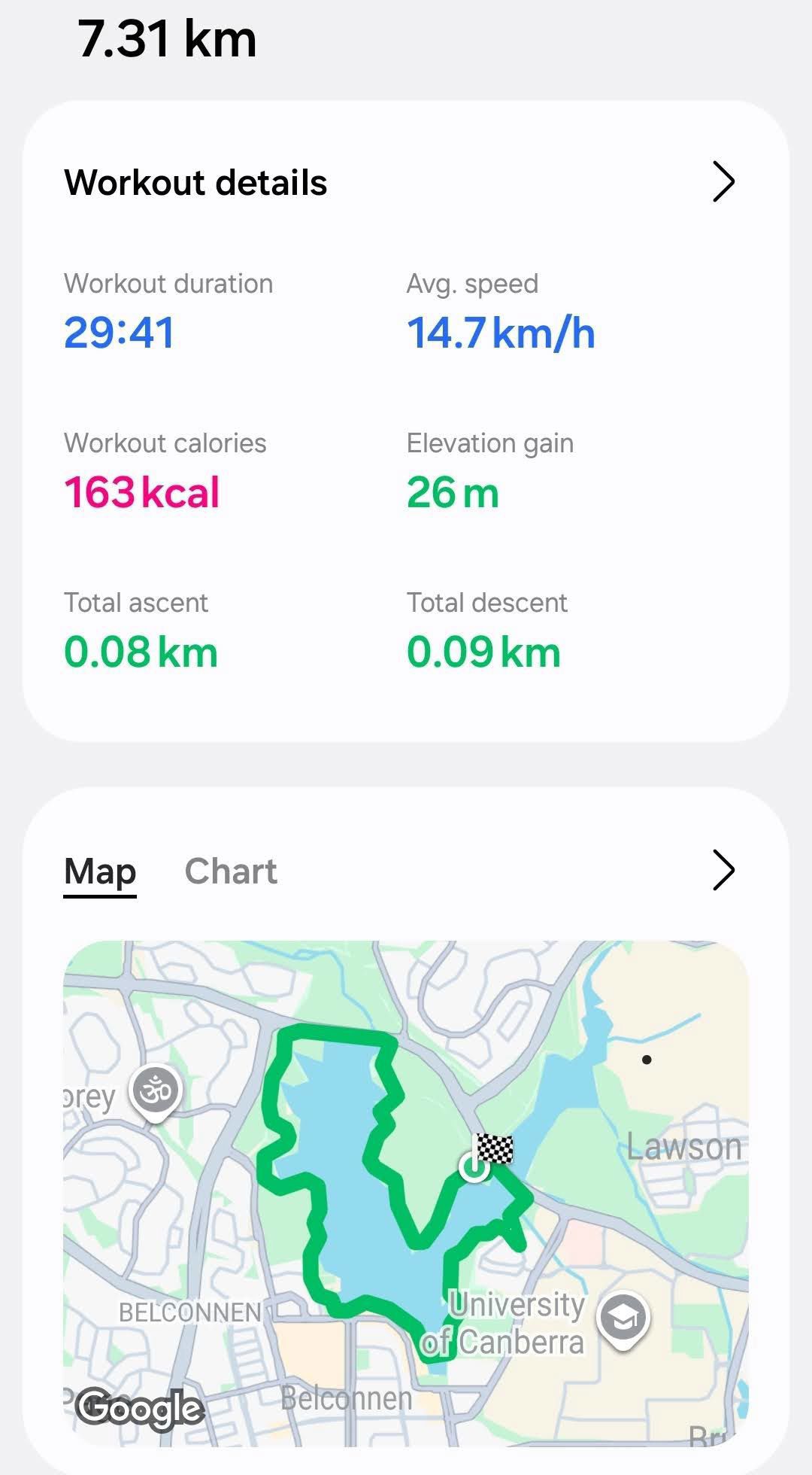7.3 km ride - Lake Ginninderra - Saturday, October 18, 2025