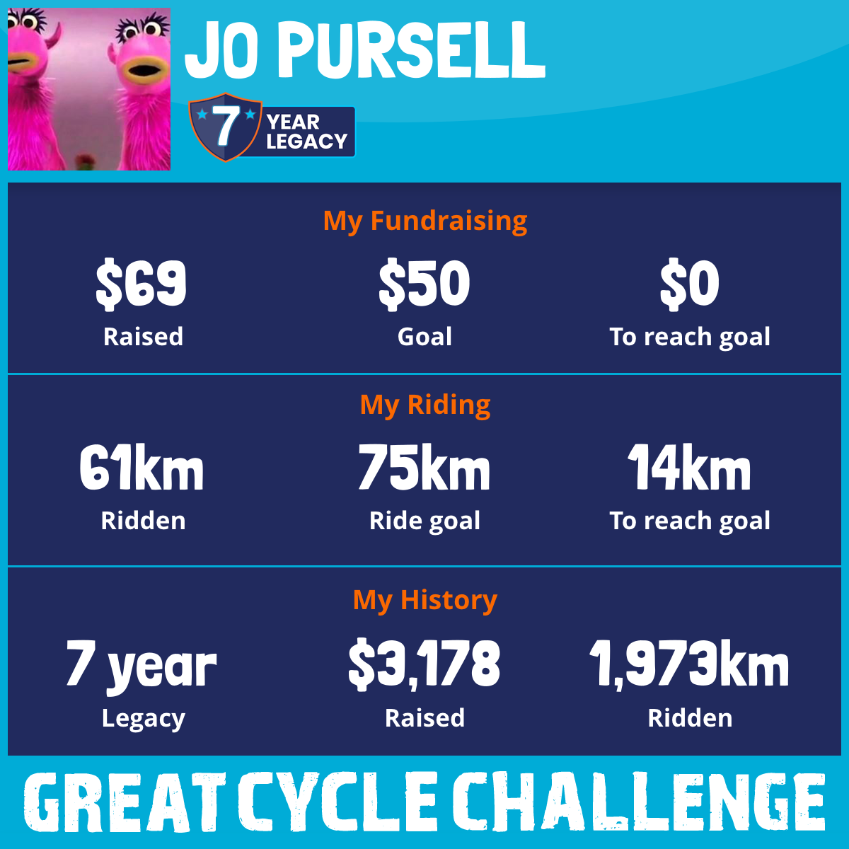 And so I am riding and raising funds to support the Children's Medical Research Institute to continue their work into the prevention, diagnosis, treatment and finding a cure for childhood cancer.