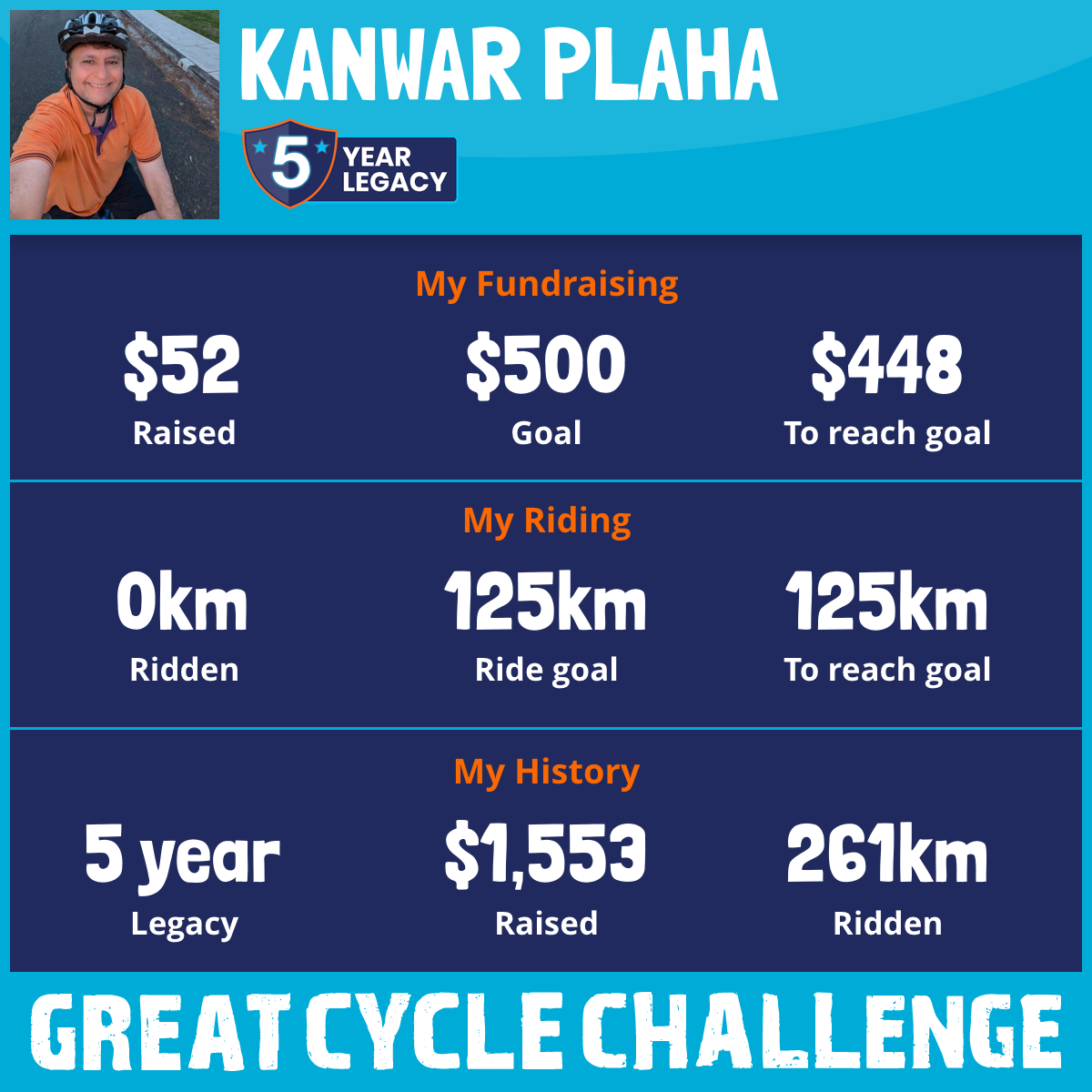 Once again, this October, I am taking part in the Great Cycle Challenge to fight kids' cancer! In the past 5 years, I've roughly ridden the distance from Sydney to Canberra, and hope to continue further.