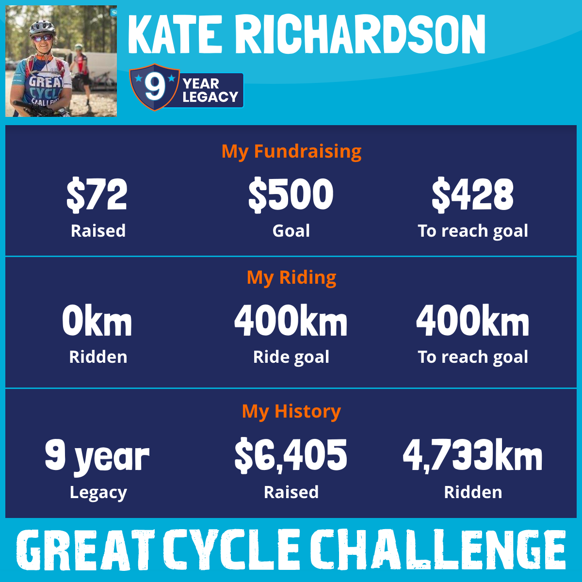 405 km Ridden$605 Raised2025