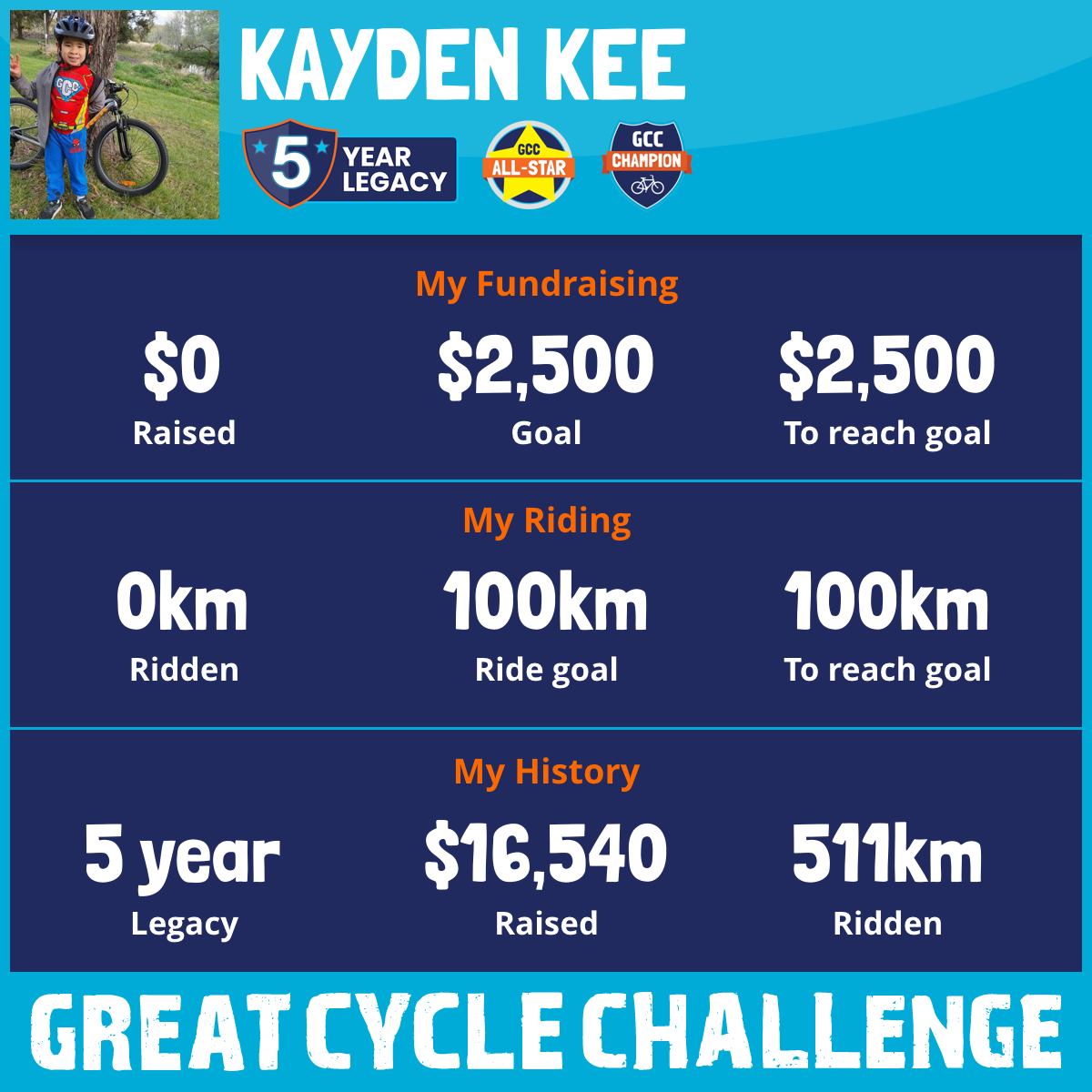This is my 5th year riding to raise funds to fight this disease called Cancer that affects people of all ages, and people die from it. I am very sad to know kids my age fighting cancer don't get to spend their days enjoying life, pain-free. With this, I have made a pledge to use my skill to to support the Children's Medical Research Institute to continue their work into the prevention, diagnosis, treatment and finding a cure for childhood cancer. I believe Kids should be living life, not fighting for it!
