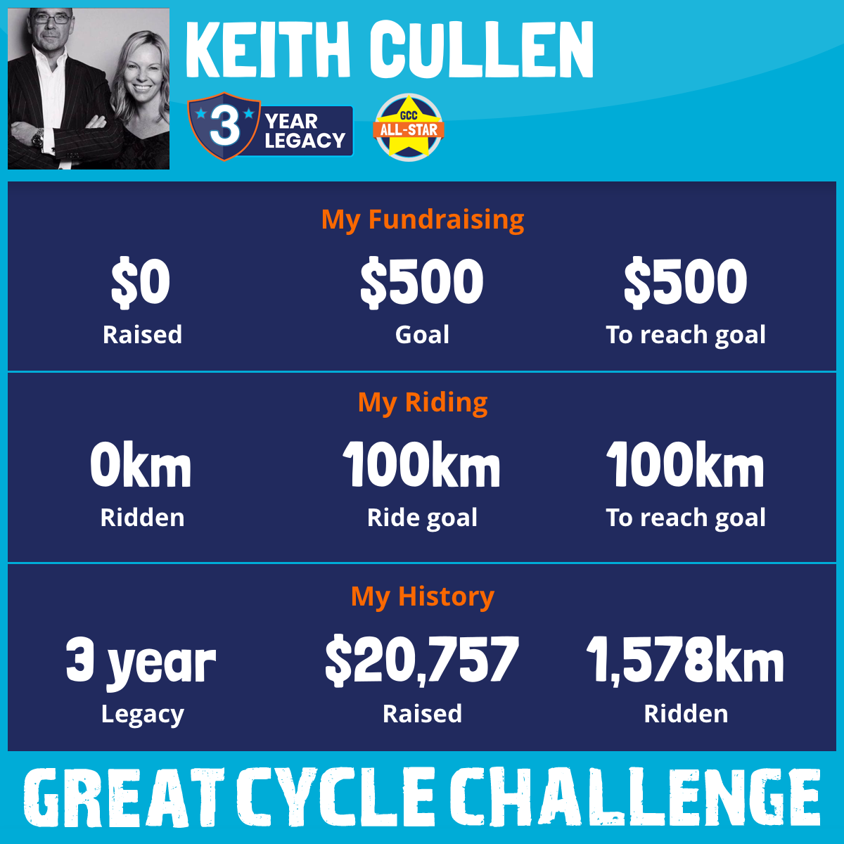 After busting my femur in a heavy cycling fall at Christmas I have been sluggish to get going again - so this October, for the extra motivation I obviously need, I am going to ride 1,000 km in the Great Cycle Challenge to fight kids' cancer with a goal of raising $10 for every km I ride.