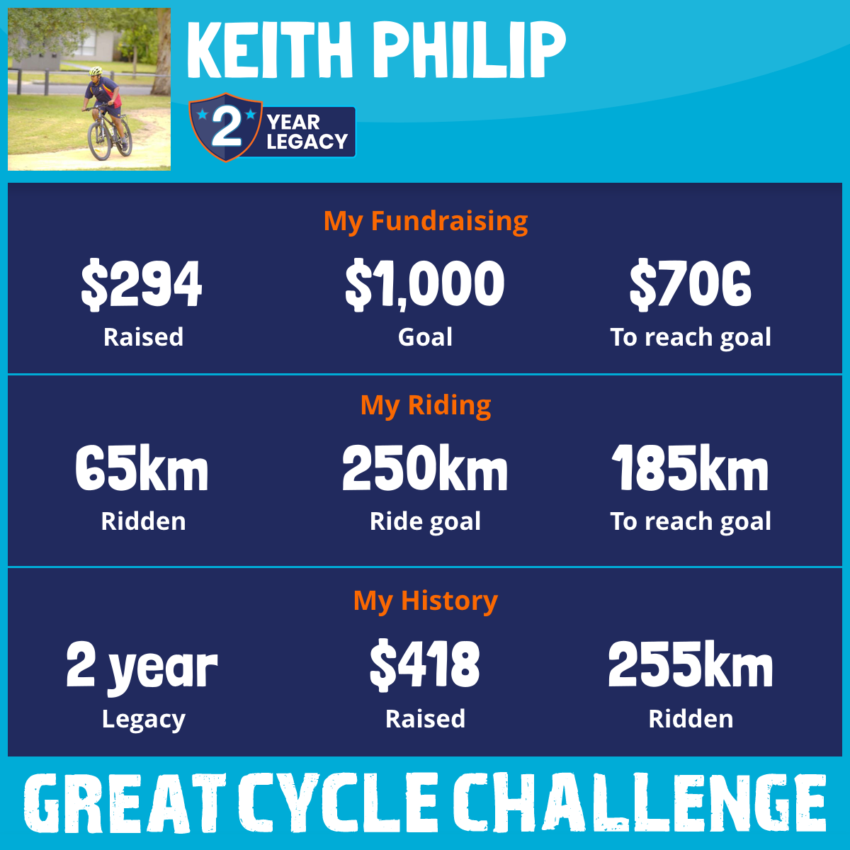 190 km Ridden$124 Raised2024