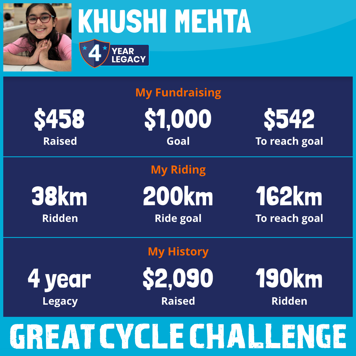 And so I am riding and raising funds to support the Children's Medical Research Institute to continue their work into the prevention, diagnosis, treatment and finding a cure for childhood cancer.