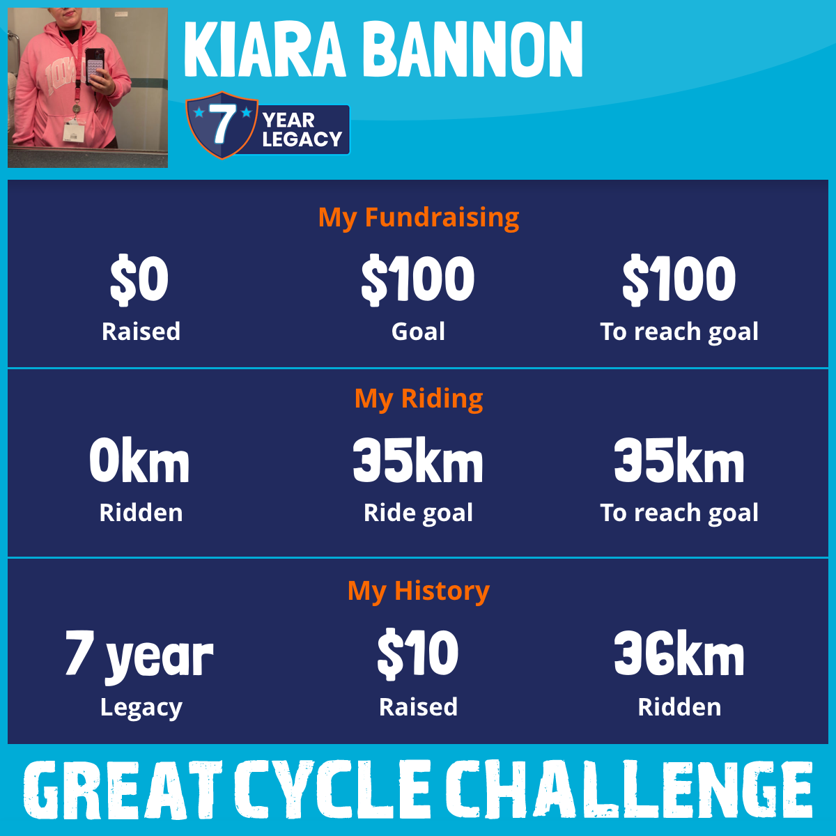 I am riding 35 km in memory of Georgia Fletcher. Please sponsor me and support my challenge to fight kids' cancer and save little lives.