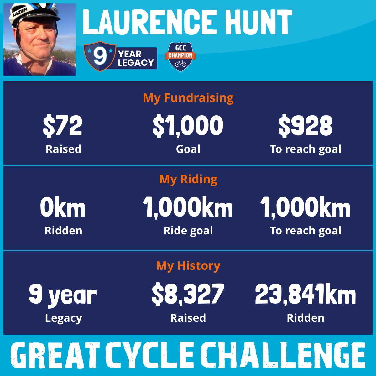 3,817 km Ridden$1,292 Raised2021