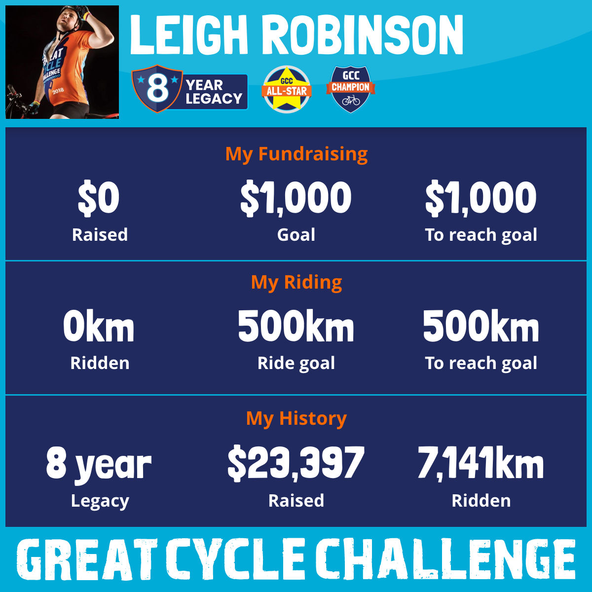 1,002 km Ridden$2,549 Raised2023