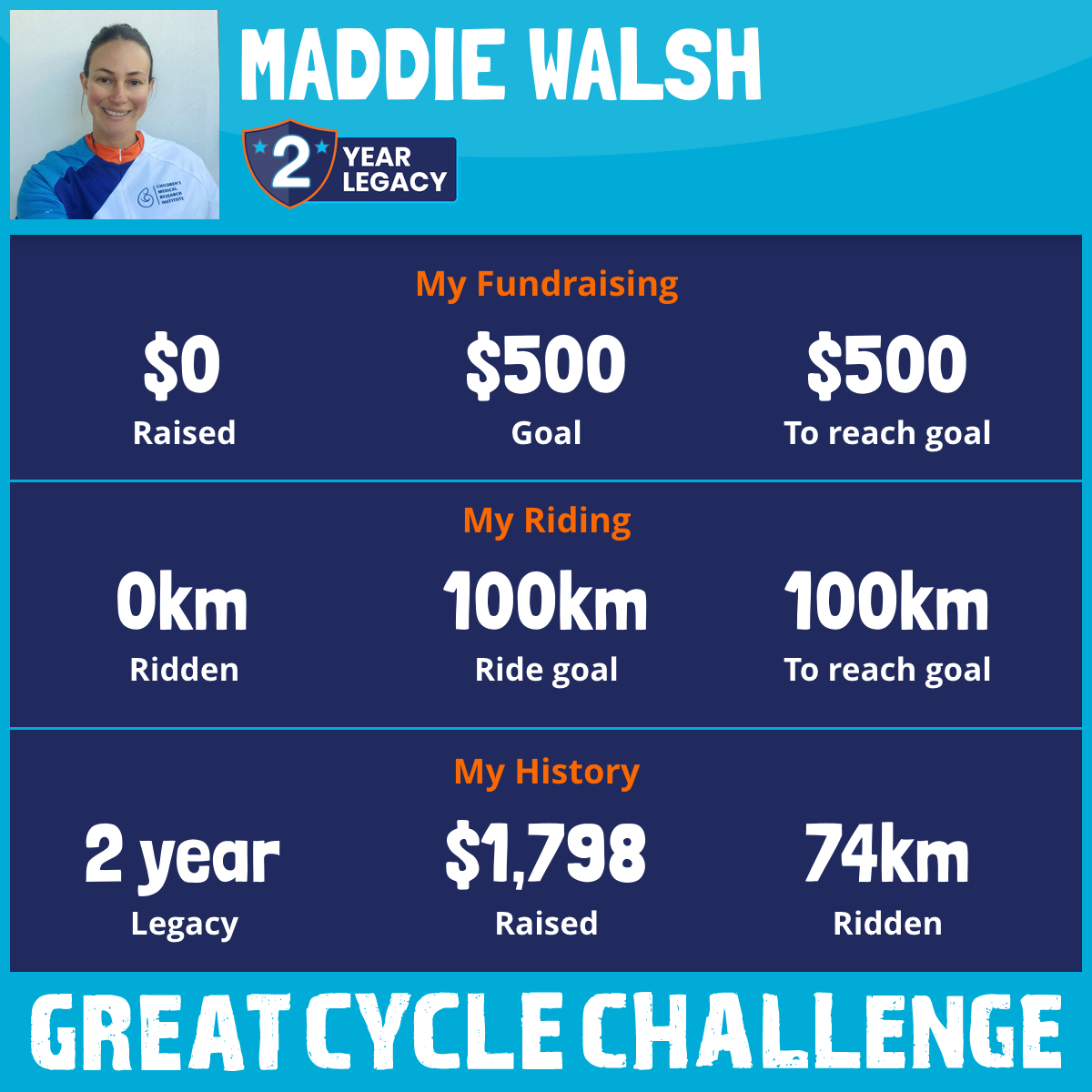 And so I am riding and raising funds to support the Children's Medical Research Institute to continue their work into the prevention, diagnosis, treatment and finding a cure for childhood cancer.