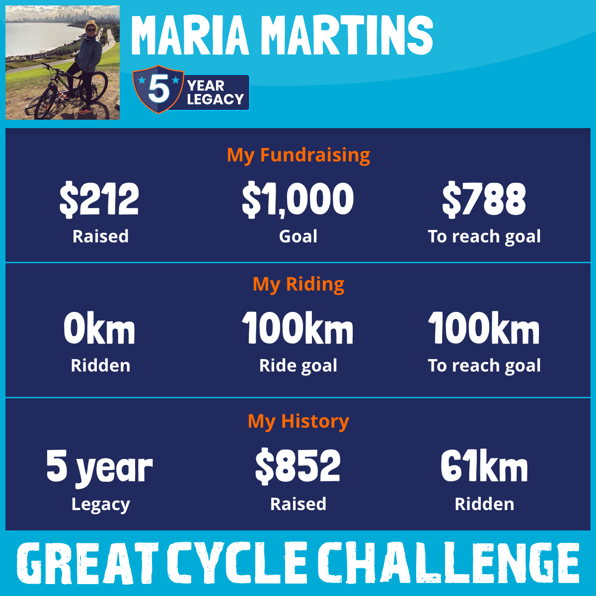 And so I am riding and raising funds to support the Children's Medical Research Institute to continue their work into the prevention, diagnosis, treatment and finding a cure for childhood cancer.
